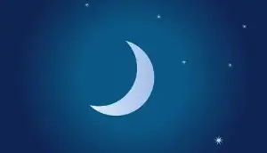음력 3일 경에 뜨는 오른쪽이 둥근 눈썹 모양의 작은 달. (저녁에 서쪽 하늘에서 잠시 보임)