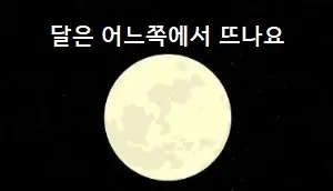 아이들이 '달은 어디서 뜨나요'라고 질문했을 때 곧바로 설명해주려면 '달은 동쪽에서 떠서 서쪽으로 이동한다'는 시실만 기억하면 됩니다. 즉, 달은 해와 마찬가지로 동쪽에서 떠서 서쪽으로 집니다.
