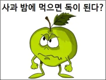 사과를 밤에 먹으면 독이 된다는 말은 사실이 아니고 거짓입니다. 그러나 건강을 헤칠 우려가 있기 때문에 밤에는 가급적 사과를 먹지 않는 것이 좋습니다.